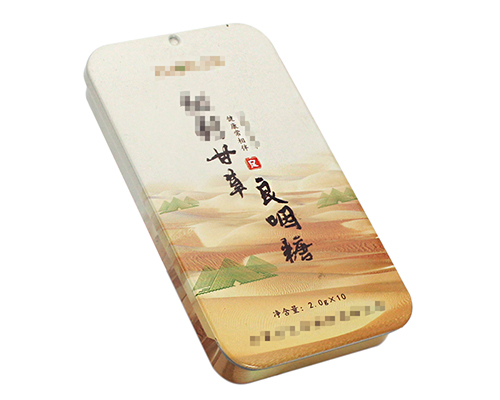 方形滑蓋甘草良咽糖鐵盒_麥?zhǔn)瞎迾I(yè)食品鐵盒包裝——麥?zhǔn)瞎迾I(yè)有限公司,擁有十二年制盒經(jīng)驗、五百多臺制盒設(shè)備、十多名模具開發(fā)師傅、三百多名訓(xùn)練有素的操作工、五條自動化制盒生產(chǎn)線、2000平方米的包裝車間、五十多名銷售精英、一站式鐵盒包裝供應(yīng)商、20天內(nèi)完成,長方形保健品鐵盒定制熱線:18676322818.