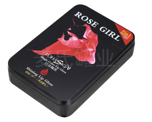 此款變色唇膏包裝鐵盒產(chǎn)品材質(zhì)為鍍錫馬口鐵料制作而成,其厚度控制在0.23mm,鐵盒整體結(jié)構(gòu)為兩片罐,內(nèi)卷線天地蓋,經(jīng)典的長方形設(shè)計(jì),可包裝各種唇膏化妝產(chǎn)品。