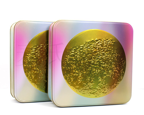這款馬口鐵月餅盒產(chǎn)品選用材質(zhì)為鍍錫馬口鐵料制作,單面專色印刷工藝處理,外表面上光油,內(nèi)壁過食品級(jí)金油處理,能有效的提升鐵盒的外觀質(zhì)感。鐵盒印刷為平面膠印處理,客戶可在圖文位置制作雕刻,使得鐵盒表面生產(chǎn)一種3D立體的視覺效果,吸引消費(fèi)者的眼球。