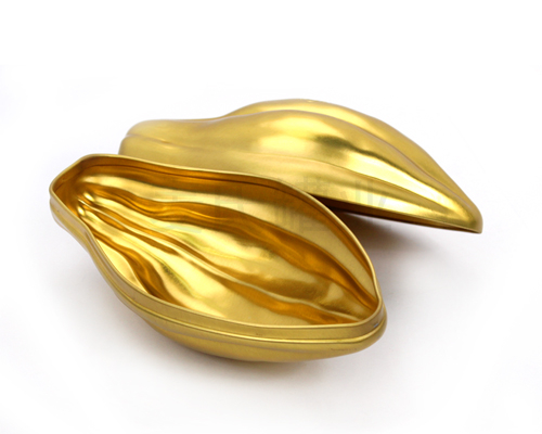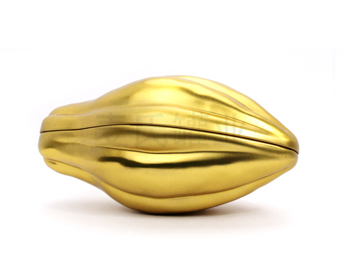形狀為創(chuàng)意的瓜形造型打造,規(guī)格為185mm*100mm*95mm ,可滿足包裝500g不等的食品、茶葉、禮品等產(chǎn)品。其結構為兩片鐵罐,鐵盒全身為拉伸工藝成型制作。這款瓜形禮品鐵盒子擁有創(chuàng)意的鏤空網(wǎng)狀設計,