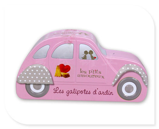此款汽車形馬口鐵皮盒表面印刷為單面印刷,為CMYK四色+PSM專色處理,鐵盒外觀造型為小汽車形設(shè)計(jì),版面整潔簡(jiǎn)單,適合包裝各種精美禮品包裝,優(yōu)雅簡(jiǎn)潔的設(shè)計(jì)風(fēng)格,能符合兒童年青時(shí)代包裝的需求。此款馬口鐵盒的版面設(shè)計(jì)稿可由客戶自行設(shè)計(jì)或我司設(shè)計(jì)。