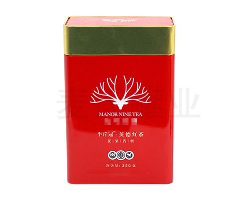 這款英德紅茶鐵盒,方形茶葉鐵盒包裝適合存放紅茶,黑茶,綠茶,烏龍茶等茶種的茶葉,外型大氣上檔次,是鐵盒包裝一種茶葉鐵盒。