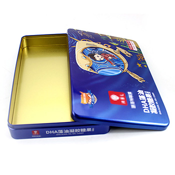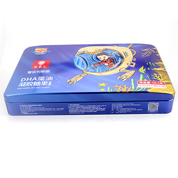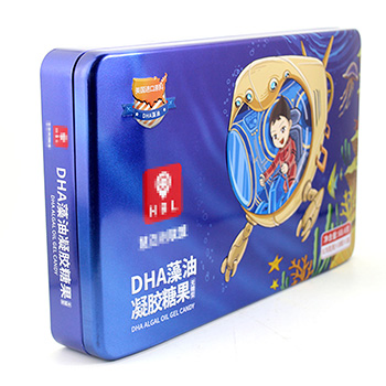 此款藻油凝膠糖果馬口空鐵盒包裝的尺寸為350*220*55mm,為了順應多樣化的市場包裝需求,這款糖果馬口鐵盒可做成心形、正方形、橢圓形、車形、書本形等異形造型。